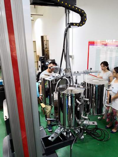 2018年8月2日,來自重慶金世利航空材料有限公司的張主任等一行三人蒞臨珠海,對前期訂購的九臺試驗機設備進行了現場驗收。