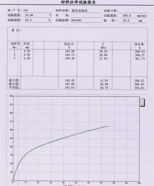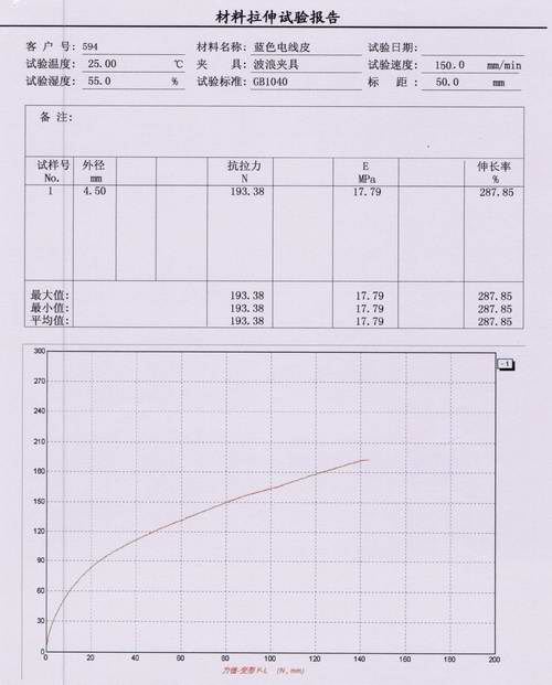 電線電纜的絕緣外皮報告內容:①電線外徑   ②抗拉力   ③彈性模量   ④伸長率