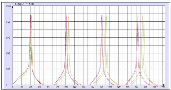 該用戶為某彈簧墊圈生產(chǎn)企業(yè)。試驗(yàn)時(shí)用速度1mm/min加載到88.96kN,力值再卸載到0N,重復(fù)3次;再用速度1mm/min加載到88.96kN,到88.96kN時(shí)這個(gè)力值位移為起點(diǎn),卸載力值,位移(變形)0.76mm時(shí),試驗(yàn)結(jié)束,記錄該點(diǎn)的力值。(該力值命名:反彈率)